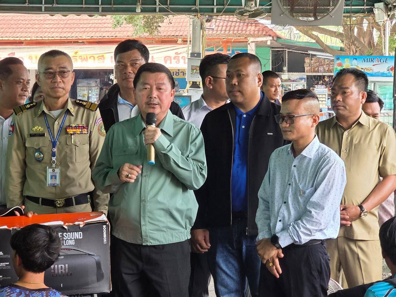 (បាត់ដំបង)៖ នាថ្ងៃទី១ ខែមេសា ឆ្នាំ២០២៥ ឯកឧត្តម សេង សក្តា រដ្ឋលេខាធិការ នៃក្រសួងការងារ និងបណ្តុះបណ្តាលវិជ្ជាជីវៈ បានចុះពិនិត្យមេីលស្ថានភាព និងស្វាគមន៍បងប្អូនពលករខ្មែរវិលត្រឡប់ពីប្រទេសថៃមកលេងស្រុកកំណើត អំឡុងពេលបុណ្យចូលឆ្នាំថ្មី ប្រពៃណីជាតិខ្មែរ នៅច្រកទ្វាព្រំដែនអន្តរជាតិដូង(បានឡែម) ក្នុងស្រុកកំរៀង ខេត្តបាត់ដំបង ខណៈដែលការលើកលែងតម្លៃសេវាការអនុញ្ញាត ចេញ-ចូល ប្រទេសថៃ (Re-entry permit) អំឡុងពេលបុណ្យចូលឆ្នាំថ្មី ចាប់ផ្តើមអនុវត្តពីថ្ងៃទី១ ខែមេសា ឆ្នាំ២០២៥ រហូតដល់ថ្ងៃទី១៥ ខែឧសភា ឆ្នាំ២០២៥។