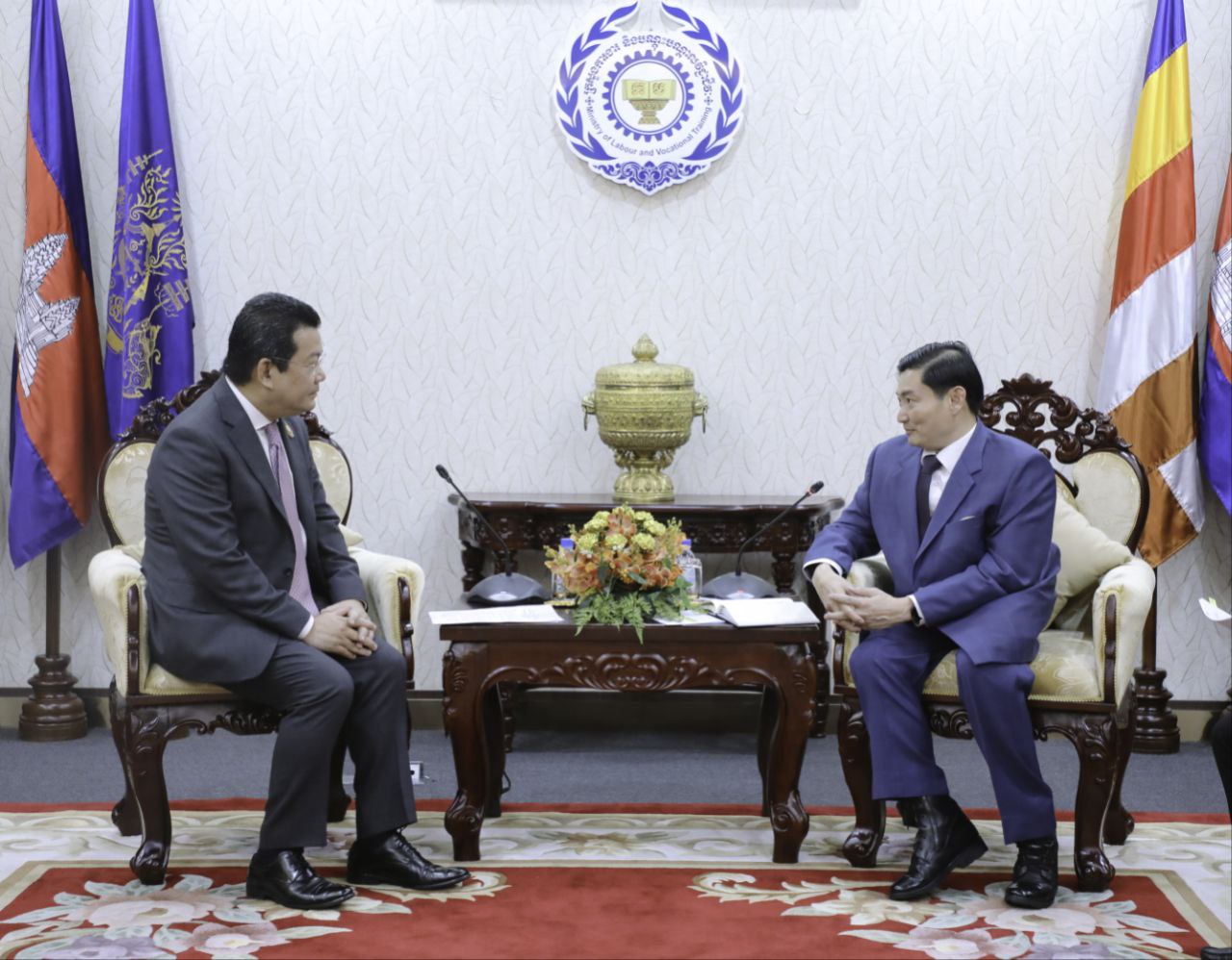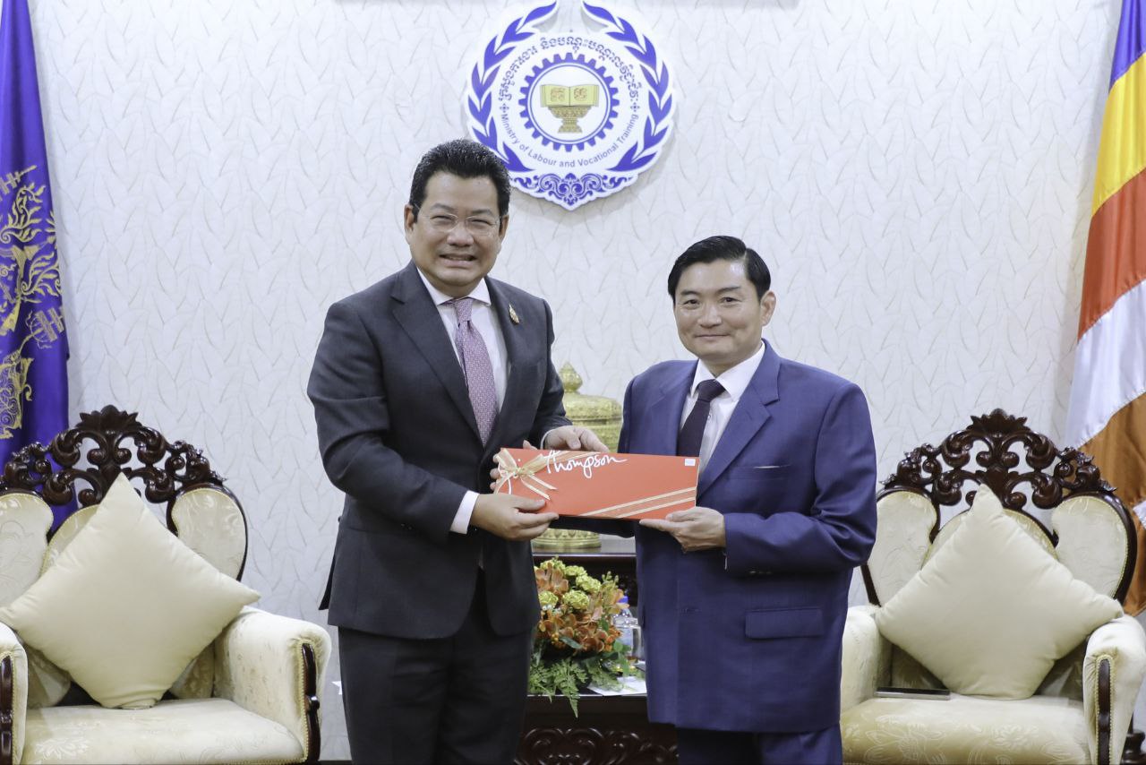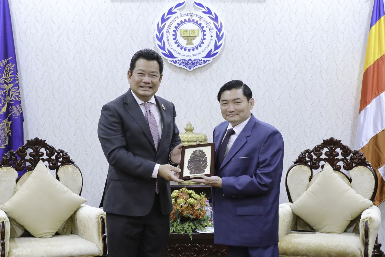 ឯកឧត្តម ហេង សួរ ជួបពិភាក្សាការងារជាមួយ ឯកឧត្តម ឯកអគ្គរាជទូតព្រះរាជាណាចក្រថៃ ប្រចាំព្រះរាជាណាចក្រកម្ពុជា ដើម្បីពង្រឹងកិច្ចសហប្រតិបត្តិការលើវិស័យការងារ និងបណ្ដុះបណ្ដាលវិជ្ជាជីវៈ