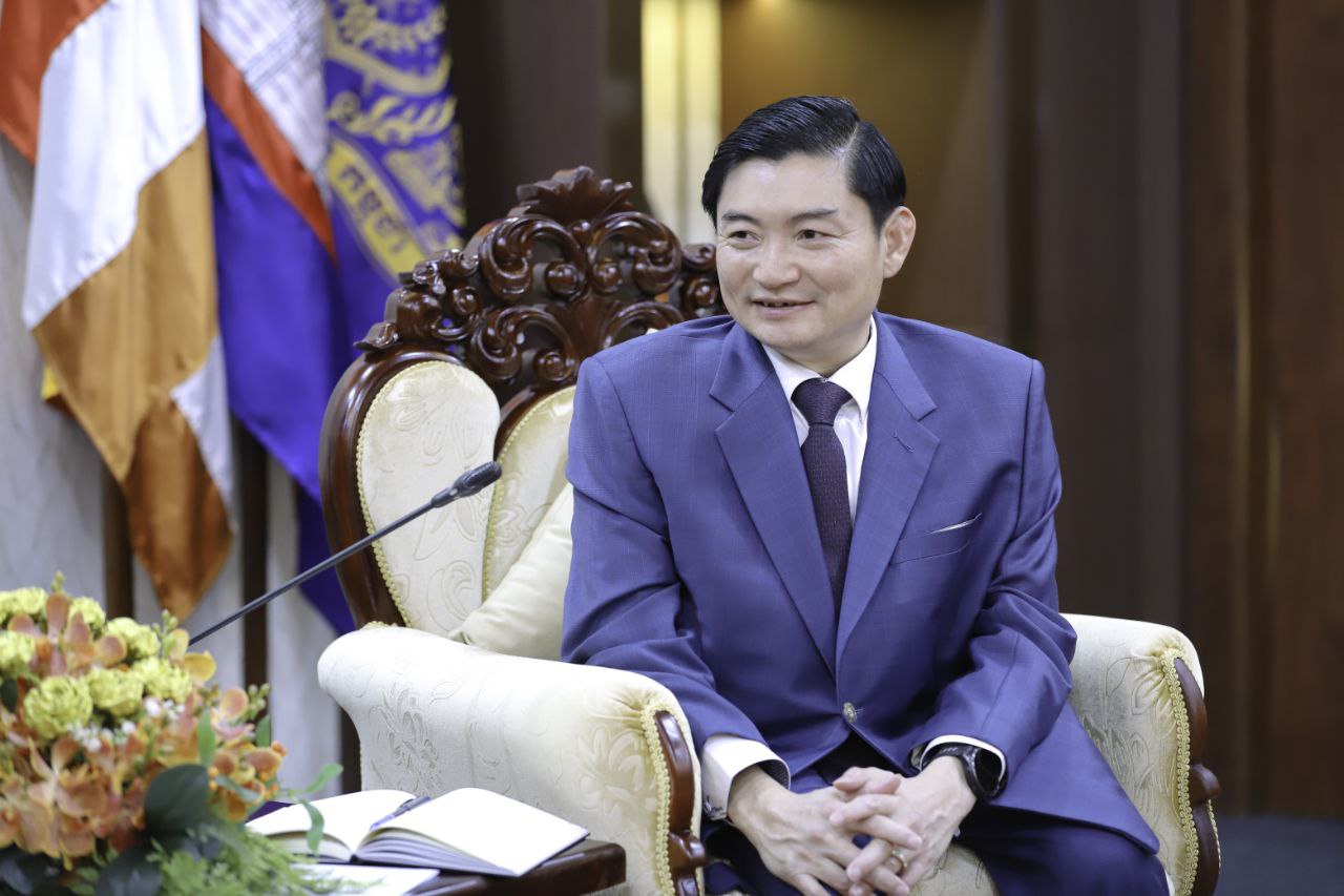 (ភ្នំពេញ)៖ ឯកឧត្តម ហេង សួរ រដ្ឋមន្ត្រីក្រសួងការងារ និងបណ្តុះបណ្តាលវិជ្ជាជីវៈ បានទទួលជួបសម្តែងការគួរសម និងពិភាក្សាការងារជាមួយ ឯកឧត្តម Tull TRAISORAT ឯកអគ្គរាជទូតនៃព្រះរាជាណាចក្រថៃ តែងតាំងថ្មីប្រចាំព្រះរាជាណាចក្រកម្ពុជា។