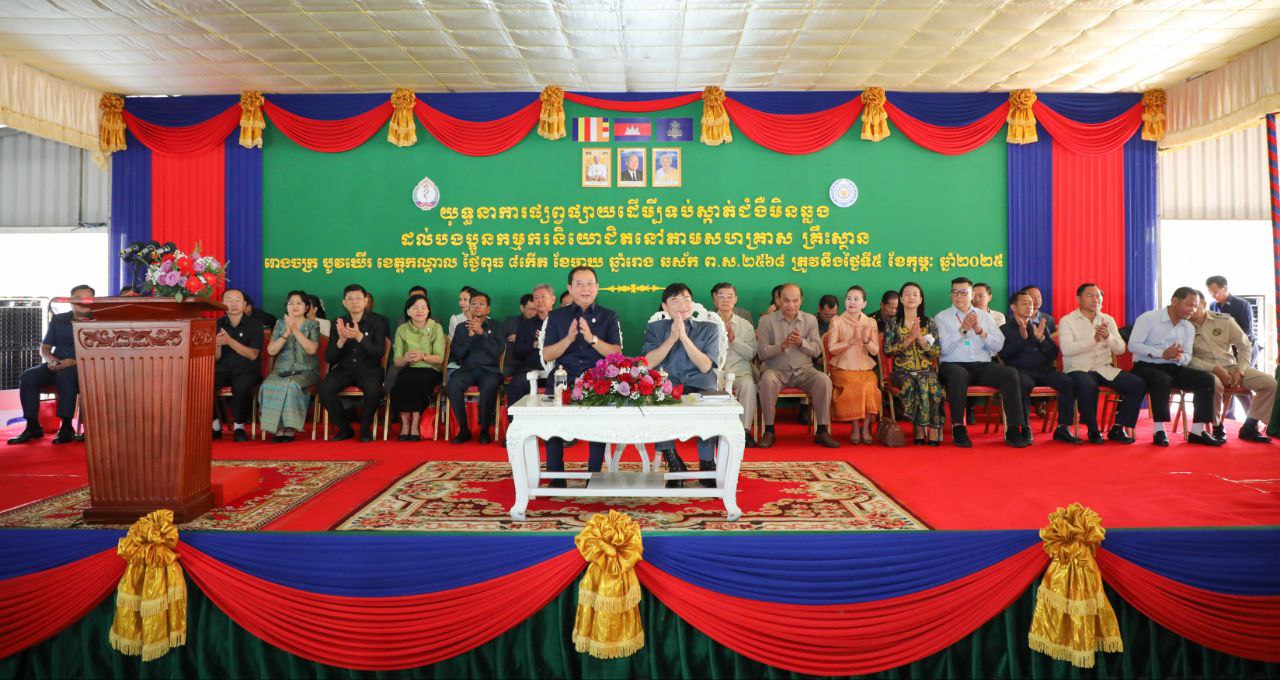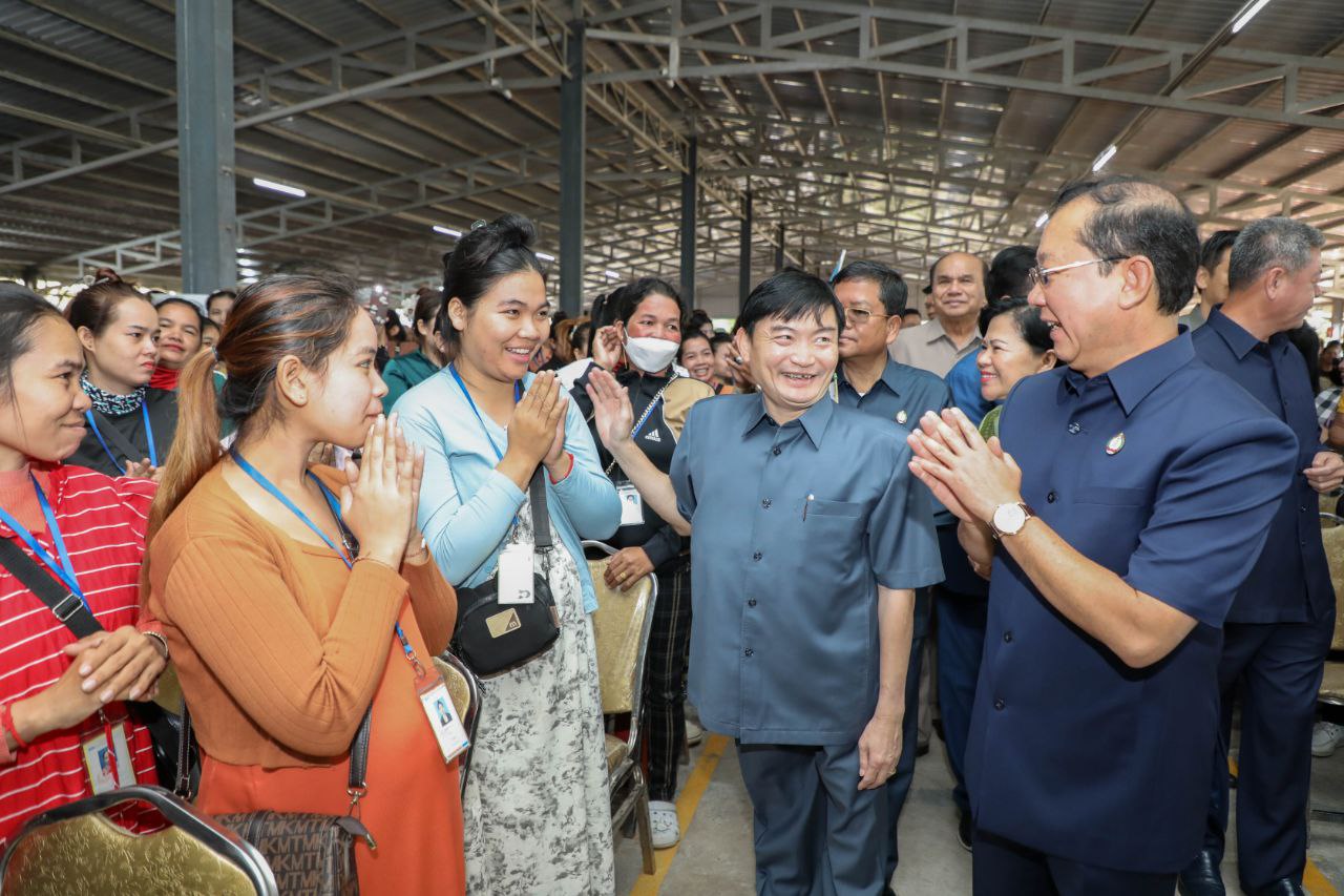 នាព្រឹកថ្ងៃពុធ ទី៥ ខែកុម្ភៈ ឆ្នាំ២០២៥ ឯកឧត្តម ហេង សួរ រដ្ឋមន្ត្រីក្រសួងការងារ និងបណ្តុះបណ្តាលវិជ្ជាជីវៈ និង ឯកឧត្តមសាស្ត្រាចារ្យ ឈាង រ៉ា រដ្ឋមន្ត្រីក្រសួងសុខាភិបាល បានអញ្ជើញជាអធិបតី ក្នុងពិធីបើកយុទ្ធនាការផ្សព្វផ្សាយ ដើម្បីទប់ស្កាត់ជំងឺមិនឆ្លងជូនដល់បងប្អូនកម្មករនិយោជិត នៅតាមសហគ្រាស គ្រឹះស្ថាន ដែលរៀបចំធ្វើឡើងនៅក្នុងបរិវេណរោងចក្រ បូវឃើរ ហ្គាមេន ហ្វេកធើរី ស្ថិតក្នុងឃុំបែកចាន ស្រុកអង្គស្នួល ខេត្តកណ្តាល។