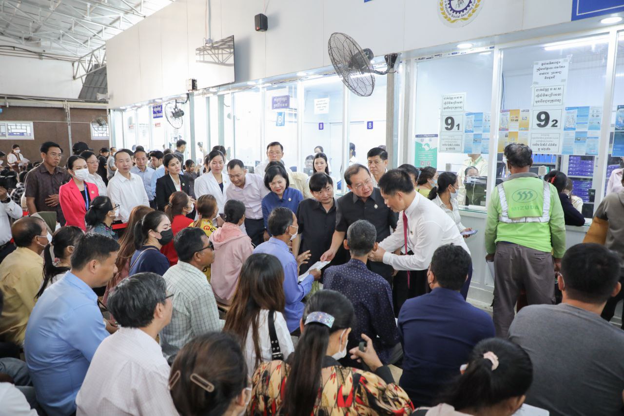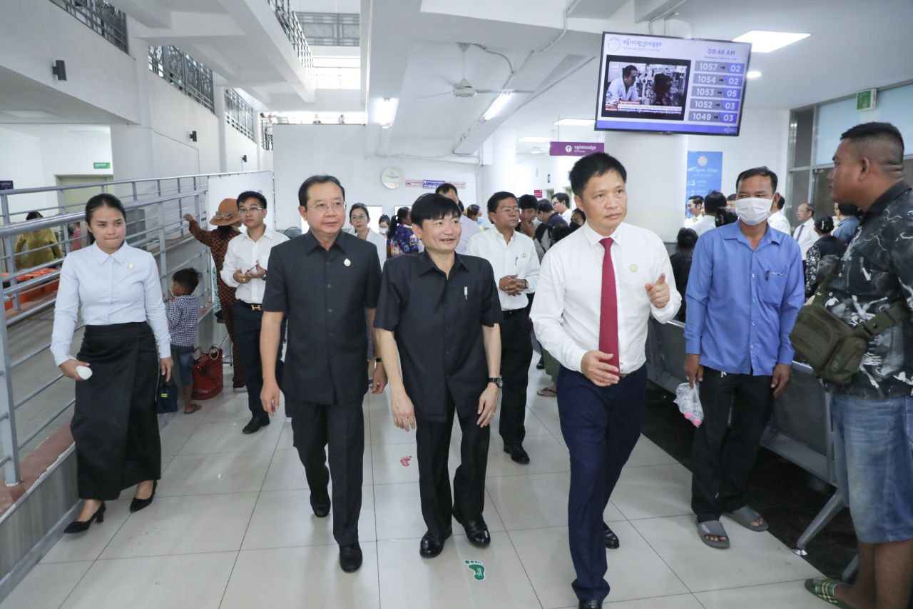 រដ្ឋមន្ត្រីក្រសួងការងារ និងរដ្ឋមន្ត្រីក្រសួងសុខាភិបាល ចុះពិនិត្យប្រសិទ្ធភាពការបម្រើសេវា ប.ស.ស. និងមូលនិធិសមធម៌សុខាភិបាល នៅមន្ទីរពេទ្យព្រះអង្គឌួង