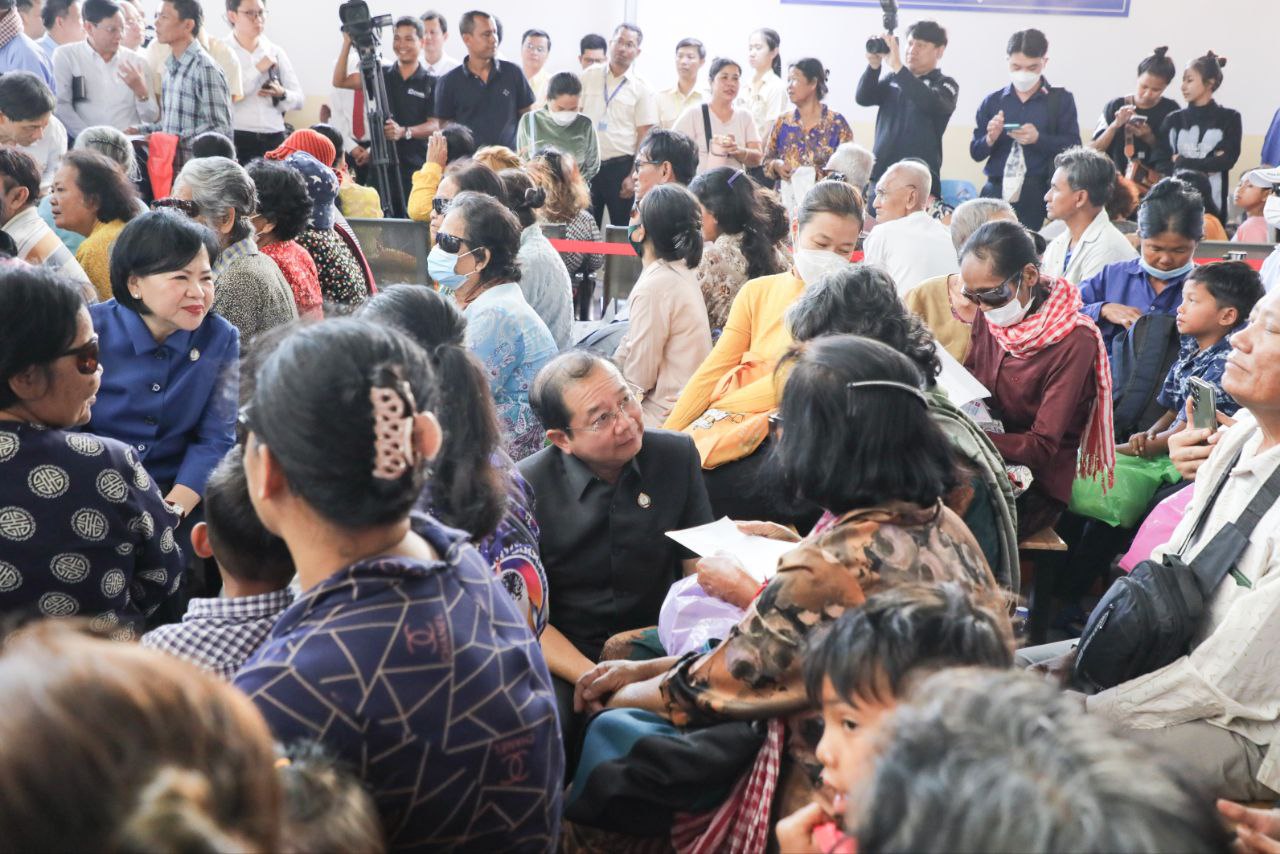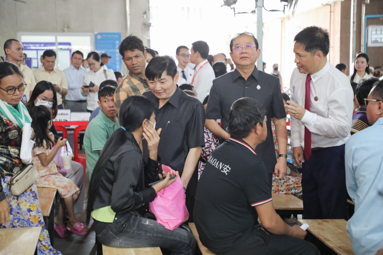 (ភ្នំពេញ)៖ នាព្រឹកថ្ងៃពុធ ទី១៩ ខែមីនា ឆ្នាំ២០២៥ ឯកឧត្តម ហេង សួរ រដ្ឋមន្ត្រីក្រសួងការងារ និងបណ្ដុះបណ្ដាលវិជ្ជាជីវៈ និងឯកឧត្តមសាស្ត្រាចារ្យ ឈាង រ៉ា រដ្ឋមន្ត្រីក្រសួងសុខាភិបាល បានអញ្ជើញចុះពិនិត្យស្ថានភាពផ្ទាល់ការបម្រើសេវាសុខាភិបាល និងការប្រើប្រាស់សេវា ប.ស.ស. និងសេវាមូលនិធិសមធម៌សុខាភិបាលរបស់បងប្អូនប្រជាពលរដ្ឋដែលមកទទួលសេវាសុខាភិបាល នៅមន្ទីរពេទ្យព្រះអង្គឌួង។