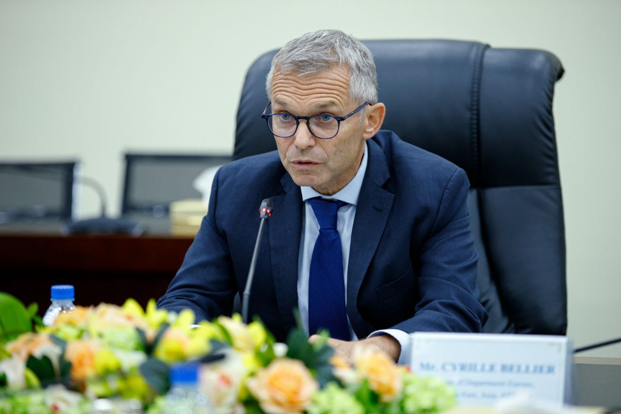 ឯកឧត្តមរដ្ឋមន្រ្តី បានស្វាគមន៍យ៉ាងកក់ក្ដៅចំពោះប្រតិភូ AFD ដែលដឹកនាំដោយលោក ស៊ីរីល ប៊ែលលីយេ ហើយឯកឧត្តមរដ្ឋមន្រ្តីបានជំរាបពីកិច្ចខិតប្រឹងប្រែងរបស់រាជរដ្ឋាភិបាលកម្ពុជា តាមរយៈក្រសួងការងារ និងបណ្ដុះបណ្ដាលវិជ្ជាជីវៈ ដើម្បីរៀបចំផែនការសកម្មភាពក្នុងការពង្រឹងជំនាញសម្រាប់ប្រជាពលរដ្ឋ និងយុវជនឱ្យទទួលបានជំនាញ បច្ចេកទេស និងវិជ្ជាជីវៈថ្មីៗ ដើម្បីឆ្លើយតបតាមតម្រូវការឧស្សាហកម្មនាពេលអនាគត។