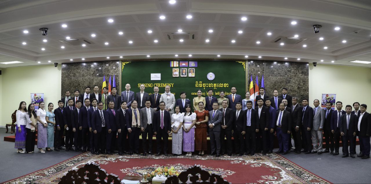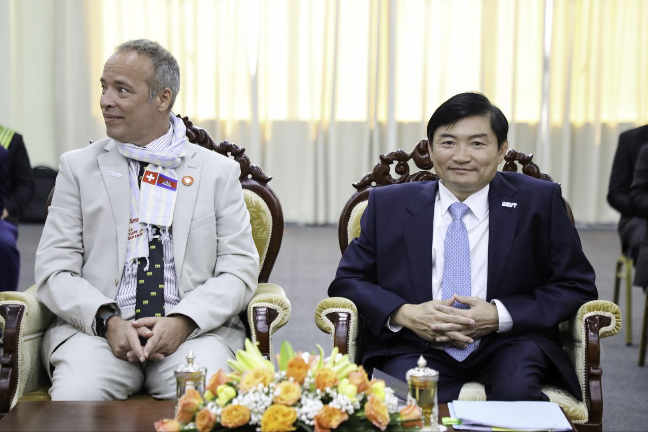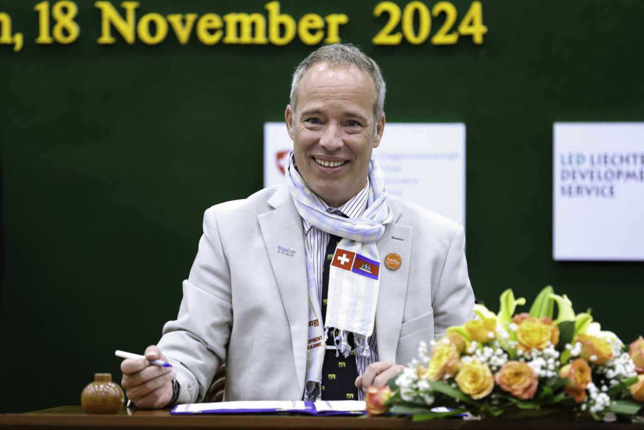 (ភ្នំពេញ)៖ នាព្រឹកថ្ងៃទី១៨ ខែវិច្ឆិកា ឆ្នាំ២០២៤ ឯកឧត្តម ហេង សួរ រដ្ឋមន្ត្រីក្រសួងការងារ និងបណ្តុះបណ្តាលវិជ្ជាជីវៈ និងលោក គ្រីស្ទៀន វ៉ុលឃឺ អាយឌី (Christian Volker Ide) ប្រធានក្រុមកម្មវិធីអភិវឌ្ឍន៍ជំនាញ (Skills Development Programme) បានអញ្ជើញចុះហត្ថលេខាលើអនុស្សរណៈនៃការយោគយល់គ្នា ស្តីពី «ការអនុវត្តកម្មវិធីអភិវឌ្ឍន៍ជំនាញ ដំណាក់កាលទី៣» ឆ្នាំ២០២៤-២០២៨ រវាងក្រសួងការងារ និងបណ្តុះបណ្តាលវិជ្ជាជីវៈ និងអង្គការ Swisscontact។
