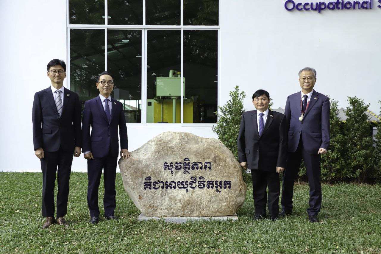 (ភ្នំពេញ)៖ មជ្ឈមណ្ឌលបណ្តុះបណ្តាលសុវត្ថិភាព និងសុខភាពការងារ ដែលជាជំនួយអភិវឌ្ឍន៍ផ្លូវការរបស់សាធារណរដ្ឋកូរ៉េ ត្រូវបានសម្ពោធដាក់ឱ្យប្រើប្រាស់ជាផ្លូវការ នារសៀលថ្ងៃសុក្រ ទី២៩ ខែវិច្ឆិកា ឆ្នាំ២០២៤ ក្រោមអធិបតីភាពដ៏ខ្ពង់ខ្ពស់របស់ ឯកឧត្តម ហេង សួរ រដ្ឋមន្ត្រីក្រសួងការងារ និងបណ្តុះបណ្តាលវិជ្ជាជីវៈ រួមនិងឯកឧត្តម ផាក់ ចឹងអ៊ុក (Park Jung-Wook) ឯកអគ្គរដ្ឋទូតសាធារណរដ្ឋកូរ៉េ ប្រចាំព្រះរាជាណាចក្រកម្ពុជា, ឯកឧត្តមបណ្ឌិត អាន់ ចុងជូ (Ahn Jong-Ju) ប្រធានទីភ្នាក់ងារសុវត្ថិភាព និងសុខភាពការងារកូរ៉េ (KOSHA) និងលោក ណាម ហូចេ (Nam Ho-Jae) តំណាងក្រសួងមុខរបរ និងការងារ នៃសាធារណរដ្ឋកូរ៉េ។