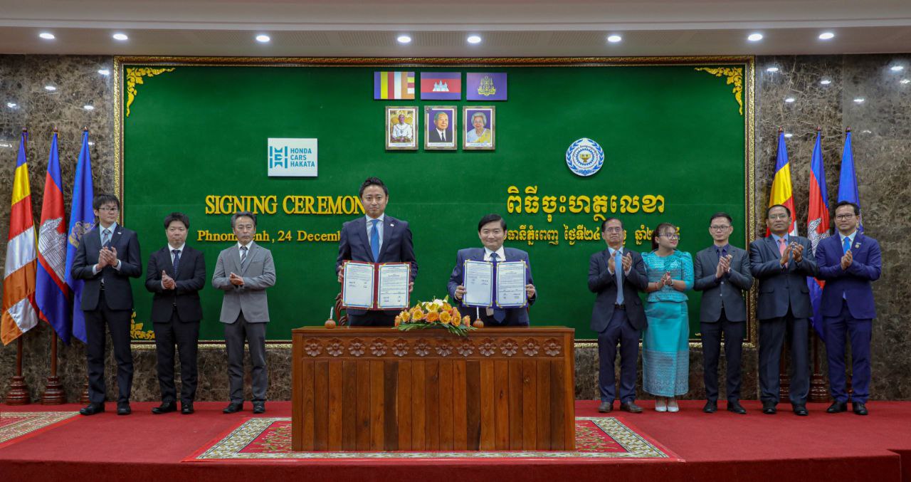 (ភ្នំពេញ)៖ ក្រសួងការងារ និងបណ្ដុះបណ្ដាលវិជ្ជាជីវៈ និងក្រុមហ៊ុន HONDA CARS HAKATA CO., LTD បានចុះហត្ថលេខាលើអនុស្សរណៈនៃការយោគយល់គ្នា ស្ដីពី "គម្រោងបណ្តុះបណ្តាលអ្នកជំនាញតោន និងបាញ់ថ្នាំរថយន្ត" ក្រោមអធិបតីភាព ឯកឧត្តម ហេង សួរ រដ្ឋមន្រ្តីក្រសួងការងារ និងបណ្តុះបណ្តាលវិជ្ជាជីវៈ និងលោក KOSHIRO MUTO នាយកប្រតិបត្តិនៃក្រុមហ៊ុន HONDA CARS HAKATA CO., LTD។ អនុស្សរណៈនៃការយោគយល់គ្នា ដែលត្រូវបានចុះហត្ថលេខារួមគ្នា នៅទីស្តីការក្រសួងការងារ និងបណ្តុះបណ្តាលវិជ្ជាជីវៈ នារសៀលថ្ងៃអង្គារ ទី២៤ ខែធ្នូ ឆ្នាំ២០២៤នេះ មានសុពលភាពសម្រាប់រយៈពេល ៤ឆ្នាំ ដោយមានគោលបំណងបង្កើតនូវក្របខ័ណ្ឌនៃកិច្ចសហប្រតិបត្តិការ រវាងភាគីទាំងពីរលើការបណ្ដុះបណ្តាលជំនាញតោន និង បាញ់ថ្នាំស្របតាមស្ដង់ដារបស់ក្រុមហ៊ុន HONDA CARS HAKATA CO., LTD នៃប្រទេសជប៉ុន ដើម្បីធានាបាននូវគុណភាព និងប្រសិទ្ធភាពនៃការបណ្ដុះបណ្តាលជំនាញឯកទេសជូនដល់សិស្ស និស្សិតរបស់វិទ្យាស្ថានបច្ចេកទេសឧស្សាហកម្ម (ITI)។ ឯកឧត្តម ហេង សួរ បានថ្លែងបញ្ជាក់ថា ការចុះអនុស្សរណៈនៃការយោគយល់គ្នានាពេលនេះ គឺជាសក្ខីភាពក្នុងការផ្តល់អត្ថប្រយោជន៍សំខាន់ៗដល់ស្ថាប័នទាំងពីរ ពោលគឺសម្រាប់យុវជន យុវនារីកម្ពុជានឹងទទួលបានជំនាញ និងឱកាសបំពេញការងារក្នុងជំនាញតោន និងបាញ់ថ្នាំ ជាពិសេសជាងនេះទៀតនោះ គឺទទួលបានឱកាសក្នុងការស្វែងយល់ និងទទួលបានការបំផុសគំនិតនៃការរៀបចំអត្តចរិក និងការធ្វើការបែប «ភាពល្អឥតខ្ចោះ» របស់ជប៉ុន។ រីឯខាងក្រុមហ៊ុនវិញ ក៏នឹងទទួលបាននូវកម្លាំងពលកម្មវ័យក្មេងដែលមានសក្តានុពលខ្ពស់ មានជំនាញពិតប្រាកដ និងសមត្ថភាពពេញលេញ ដើម្បីបំពេញការងារនៅក្នុងក្រុមហ៊ុន នៅឯប្រទេសជប៉ុនផងដែរ។ ឯកឧត្តមរដ្ឋមន្ត្រី ក៏បានលើកឡើងថា អនុស្សរណៈនៃការយោគយល់គ្នានេះ គឺបានជួយរួមចំណែកយ៉ាងសំខាន់នៅក្នុងការជួយជ្រោមជ្រែង លើកកម្ពស់កម្មវិធី TVET ១,៥លាននាក់ តាមរយៈការចូលរួមបណ្តុះបណ្តាល ការបង្កើតកម្មវិធីសិក្សា ការផ្តល់សម្ភារៈ និងឧបករណ៍ចាំបាច់សម្រាប់ការបណ្តុះបណ្តាល ការផ្តល់ជំនួយបច្ចេកទេស និងហិរញ្ញវត្ថុក្នុងការបញ្ជូនអ្នកជំនាញតោន និងបាញ់ថ្នាំ ជូនដល់វិទ្យាស្ថានបច្ចេកទេសឧស្សាហកម្ម (ITI) ដែលស្ថិតក្រោមឱវាទរបស់ក្រសួងការងារ និងបណ្តុះបណ្តាលវិជ្ជាជីវៈ។ តាមរយៈកិច្ចសហការនេះ វិទ្យាស្ថានបច្ចេកទេសឧស្សាហកម្ម (ITI) មិនត្រឹមតែទទួលបានឧបករណ៍បណ្តុះបណ្តាលកម្រិតខ្ពស់ប៉ុណ្ណោះទេ ប៉ុន្តែថែមទាំងទទួលបានអត្ថប្រយោជន៍ពីការអភិវឌ្ឍកម្មវិធីសិក្សាដ៏រឹងមាំ ដែលត្រូវបានរចនាឡើងស្របតាមស្តង់ដាឧត្តមភាពរបស់ប្រទេសជប៉ុន។ កិច្ចខិតខំប្រឹងប្រែងទាំងនេះ នឹងរួមចំណែកដោយផ្ទាល់ ក្នុងការលើកកម្ពស់ជំនាញរបស់សិក្ខាកាមរបស់យើង ដោយរៀបចំពួកគេសម