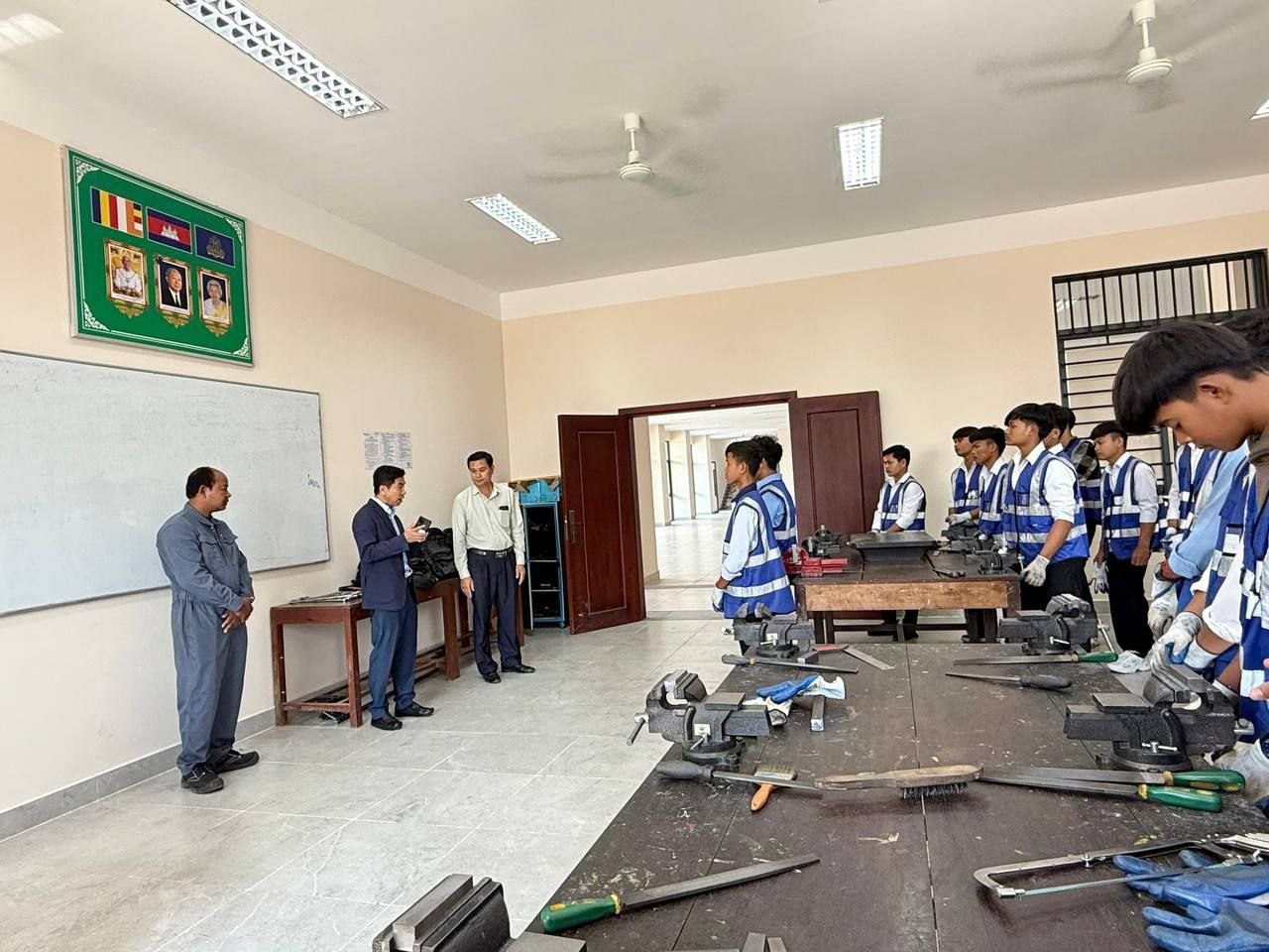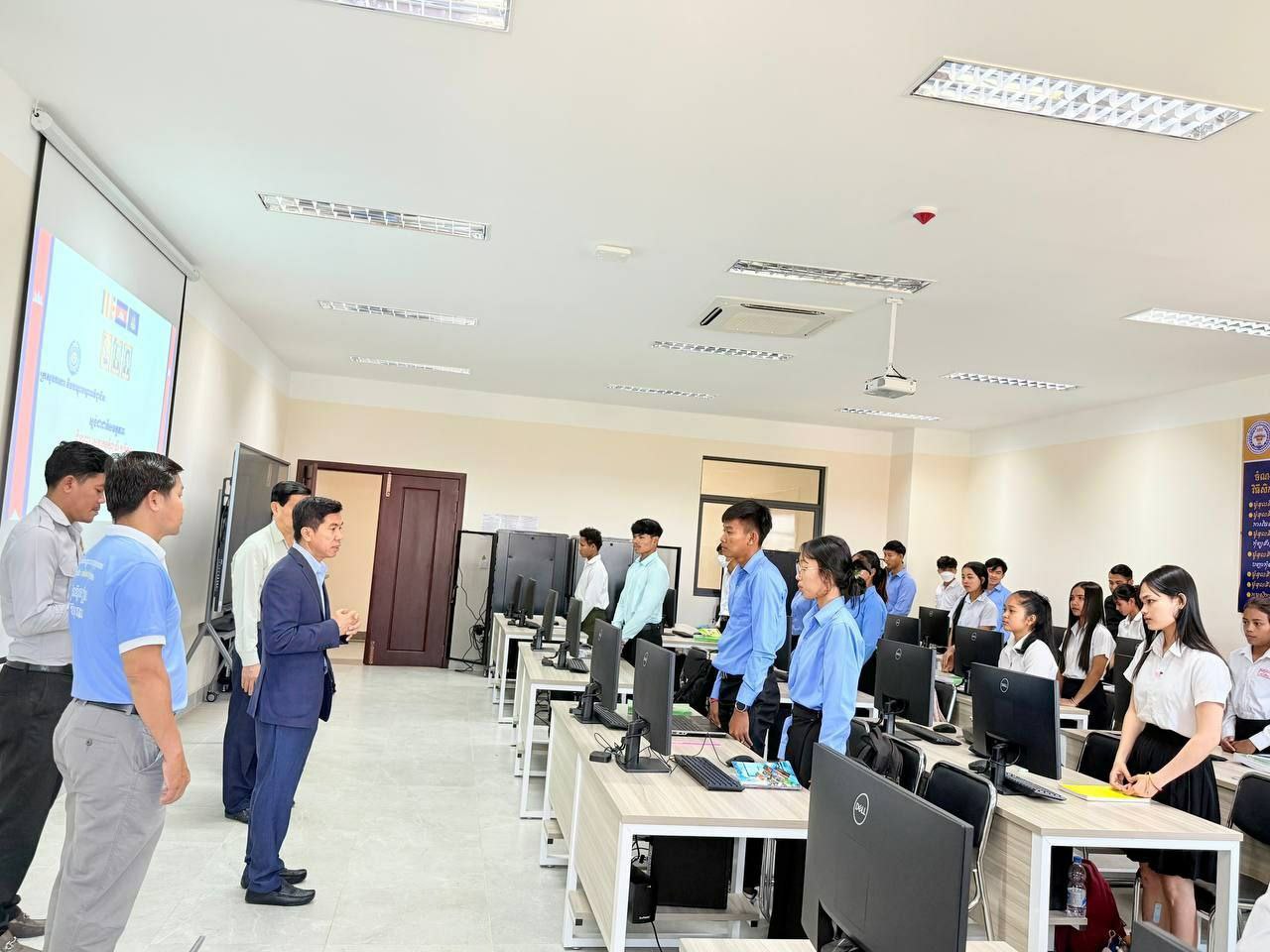 (ភ្នំពេញ)៖ ឯកឧត្តម ជា កុសល រដ្ឋលេខាធិការនៃក្រសួងការងារ និងបណ្ដុះបណ្ដាលវិជ្ជាជីវៈ បានដឹកនាំក្រុមការងារនៃអគ្គនាយកដ្ឋានអប់រំបណ្តុះបណ្តាលបច្ចេកទេស និងវិជ្ជាជីវៈ (TVET) ចុះពិនិត្យ តាមដាន និងវាយតម្លៃការអនុវត្តកម្មវិធីបណ្តុះបណ្ដាលជំនាញវិជ្ជាជីវៈ និងបច្ចេកទេស TVET គ្រប់កម្រិត ជាពិសេសកម្មវិធី TVET ១,៥លាននាក់ នៅវិទ្យាស្ថានពហុបច្ចេកទេសខេត្តកំពង់ធំ ដើម្បីប្រមូលព័ត៌មានទាក់ទងនឹងការរៀបចំដំណើរការបណ្តុះបណ្តាល ការប្រឈម សំណូមពររបស់វិទ្យាស្ថាន។