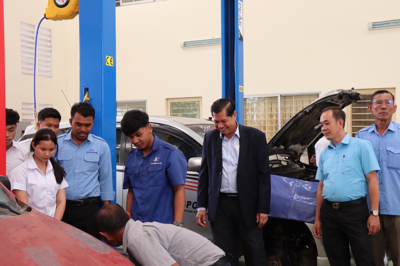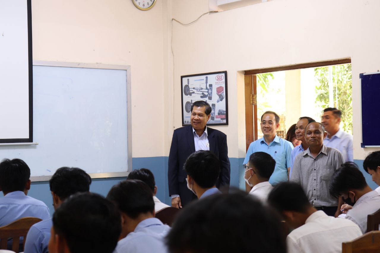 ក្នុងឱកាសនោះ ឯកឧត្តមអនុរដ្ឋលេខាធិការ បានចុះត្រួតពិនិត្យហេដ្ឋារចនាសម្ព័ន្ធរូបវ័ន្ត និងបរិវេណជុំវិញវិទ្យាស្ថាន និងបានជួបសំណេះសំណាលជាមួយលោកនាយក នាយករង (គណៈគ្រប់គ្រងវិទ្យាស្ថាន) រួមទាំងលោកគ្រូ អ្នកគ្រូ ដោយពាំនាំពីការសួរសុខទុក្ខរបស់ឯកឧត្តមរដ្ឋមន្រ្តី និងណែនាំលោកគ្រូ អ្នកគ្រូ លើវិន័យការងារ ត្រូវពង្រឹងសមត្ថភាព និងបន្តយកចិត្តទុកដាក់បង្រៀនសិស្ស ដើម្បីធានាគុណភាពគ្រឹះស្ថានអប់រំបណ្ដុះបណ្ដាលបច្ចេកទេស និងវិជ្ជាជីវៈ។