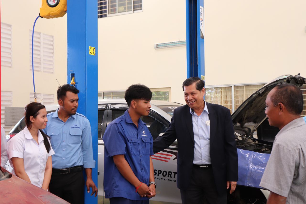 (ភ្នំពេញ)៖ ឯកឧត្តម អ៊ុក ដារ៉ា អនុរដ្ឋលេខាធិការនៃក្រសួងការងារ និងបណ្តុះបណ្តាលវិជ្ជាជីវៈបានដឹកនាំមន្ត្រីជំនាញនៃអគ្គនាយកដ្ឋាន TVET ចុះតាមដាន ត្រួតពិនិត្យ និងវាយតម្លៃ ការអនុវត្តកម្មវិធីបណ្តុះបណ្ដាល TVET គ្រប់កម្រិត ជាពិសេសកម្មវិធី TVET ១,៥លាននាក់ ដើម្បីប្រមូលព័ត៌មានទាក់ទងនឹងការរៀបចំដំណើរការបណ្តុះបណ្តាល ការប្រឈម និងសំណូមពររបស់គ្រឹះស្ថាន នៅវិទ្យាស្ថានបច្ចេកទេស ហ្ស៊ី វ៉េ សេ។