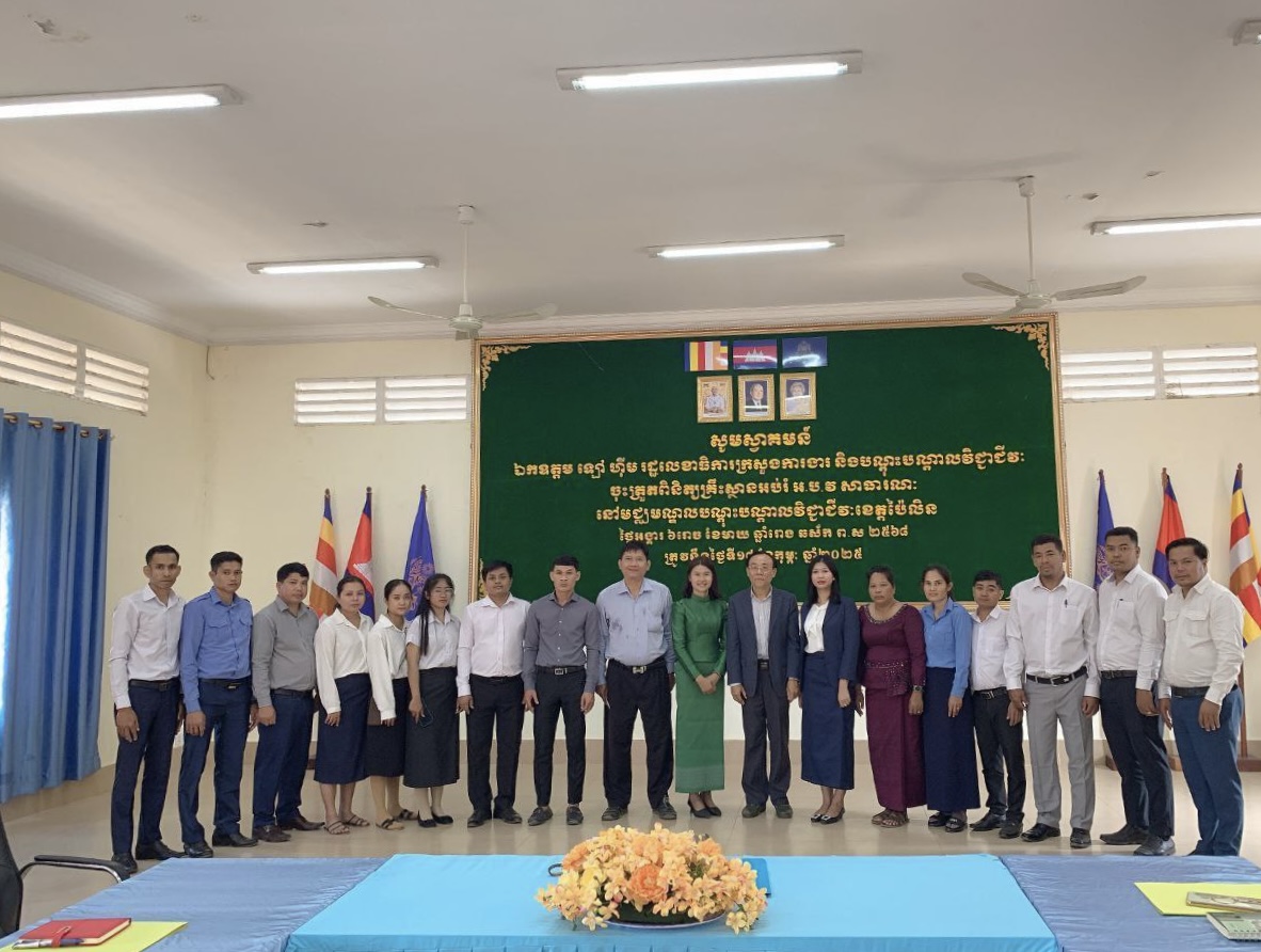 (ប៉ៃលិន)៖ ឯកឧត្តម ឡៅ ហ៊ីម រដ្ឋលេខាធិការនៃក្រសួងការងារ និងបណ្ដុះបណ្ដាលវិជ្ជាជីវៈ បានដឹកនាំក្រុមការងារនៃអគ្គនាយកដ្ឋានអប់រំបណ្តុះបណ្តាលបច្ចេកទេស និងវិជ្ជាជីវៈ(TVET) ចុះពិនិត្យ តាមដាន និងវាយតម្លៃការអនុវត្តកម្មវិធីបណ្តុះបណ្ដាលជំនាញវិជ្ជាជីវៈ និងបច្ចេកទេស TVET គ្រប់កម្រិត ជាពិសេសកម្មវិធី TVET ១,៥លាននាក់ នៅមជ្ឈមណ្ឌលបណ្តុះបណ្តាលវិជ្ជាជីវៈខេត្តប៉ៃលិន ដើម្បីប្រមូលព័ត៌មានទាក់ទងនឹងការរៀបចំដំណើរការបណ្តុះបណ្តាល ការប្រឈម សំណូមពរនានា។