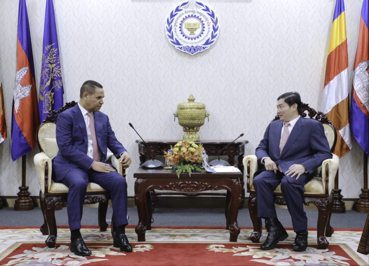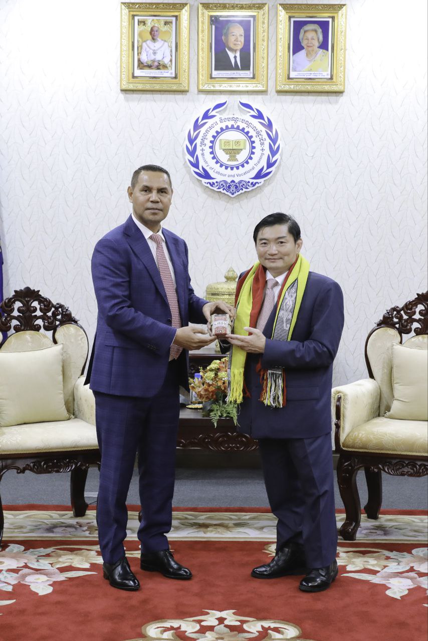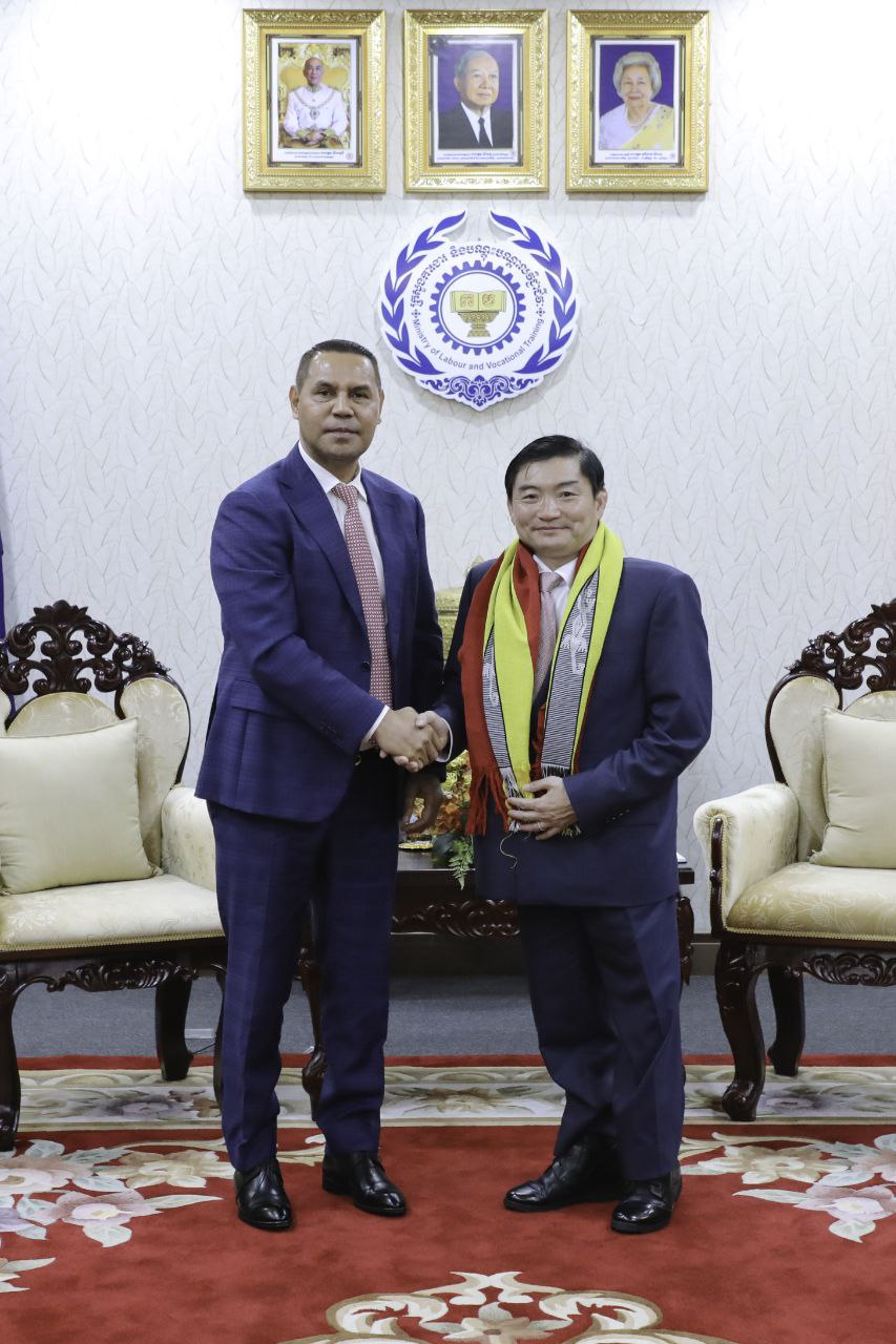 ឯកឧត្តម ហេង សួរ រដ្ឋមន្ត្រីក្រសួងការងារ និងបណ្តុះបណ្តាលវិជ្ជាជីវៈ បានបង្ហាញការស្វាគមន៍និងជំរុញឱ្យមានកិច្ចសហប្រតិបត្តិការទ្វេភាគីរវាងកម្ពុជា និងទីម័រខាងកើត លើវិស័យបណ្តុះបណ្តាលបច្ចេកទេស និងវិជ្ជាជីវៈ(TVET) ដោយក្នុងន័យនេះឯកឧត្តមរដ្ឋមន្ត្រី បានបង្ហាញការស្វាគមន៍ឱ្យមានកិច្ចសហប្រតិបត្តិការក្នុងកំរិតនៃការចុះអនុស្សរណៈយោគយល់រួមគ្នា រវាងគ្រឹះស្ថានអប់រំបណ្តុះបណ្តាលបច្ចេកទេសនៃប្រទេសទីម័រខាងកើត ជាមួយគ្រឹះស្ថានអប់រំបណ្តុះបណ្តាលបច្ចេកទេស និងវិជ្ជាជីវៈ(TVET) របស់កម្ពុជា។