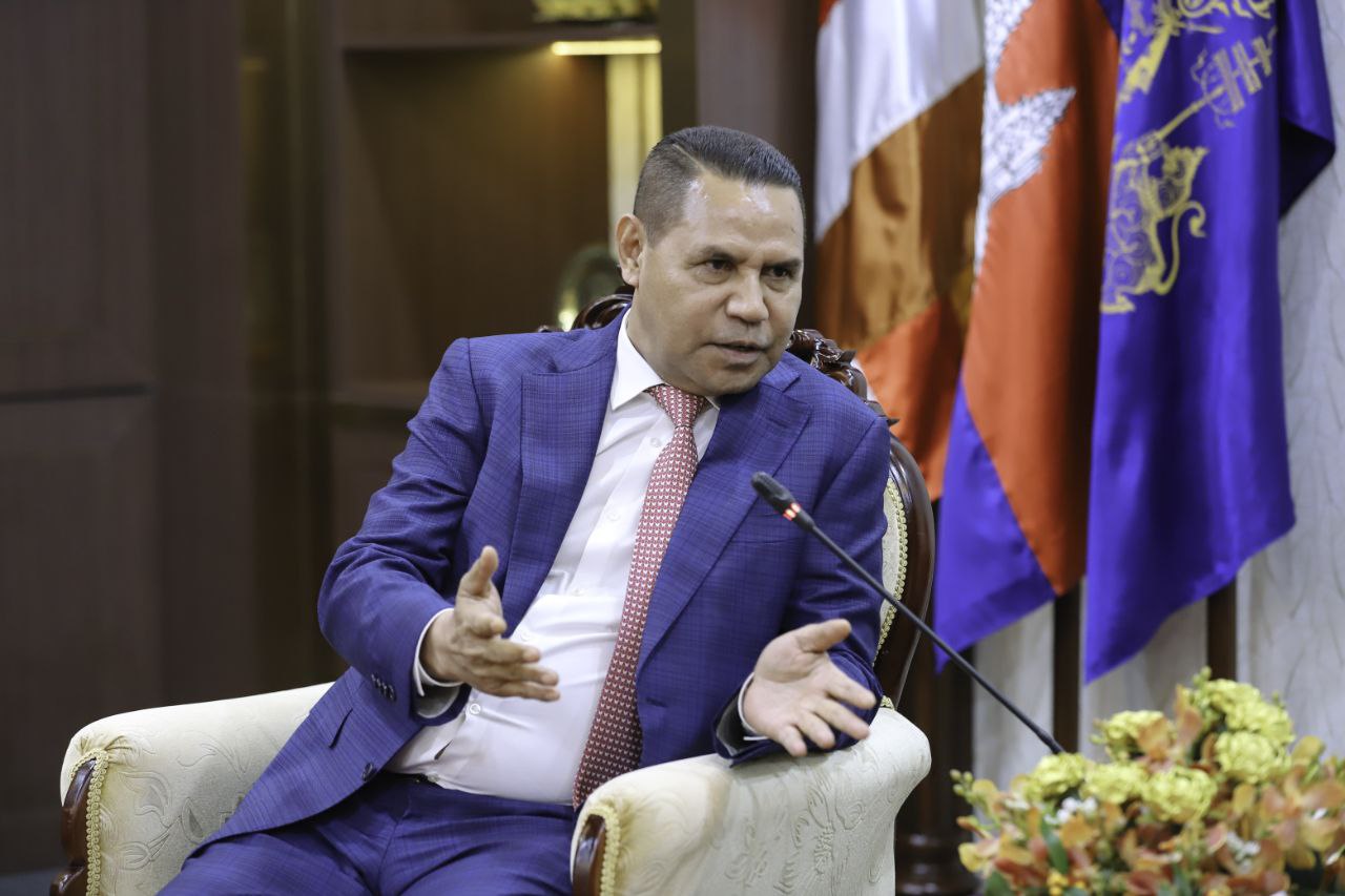 (ភ្នំពេញ)៖ នៅក្នុងឱកាសទទួលជួបសម្តែងការគួរសម និងពិភាក្សាការងារជាមួយឯកឧត្តម អ៉ឺមេណេហ្ស៉ីលដូ គុប៉ា ឡូប៉េស(Ermenegildo Krupa Lopes) ឯកអគ្គរដ្ឋទូតនៃសាធារណរដ្ឋប្រជាធិបតេយ្យទីម័រខាងកើតប្រចាំនៅកម្ពុជា នារសៀលថ្ងៃទី១៨ ខែមីនា ឆ្នាំ២០២៥