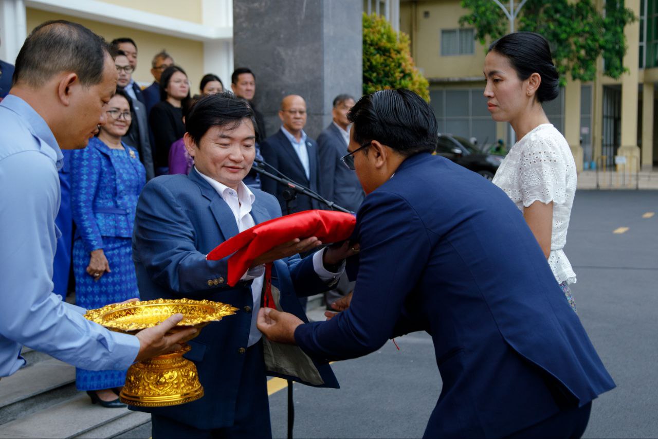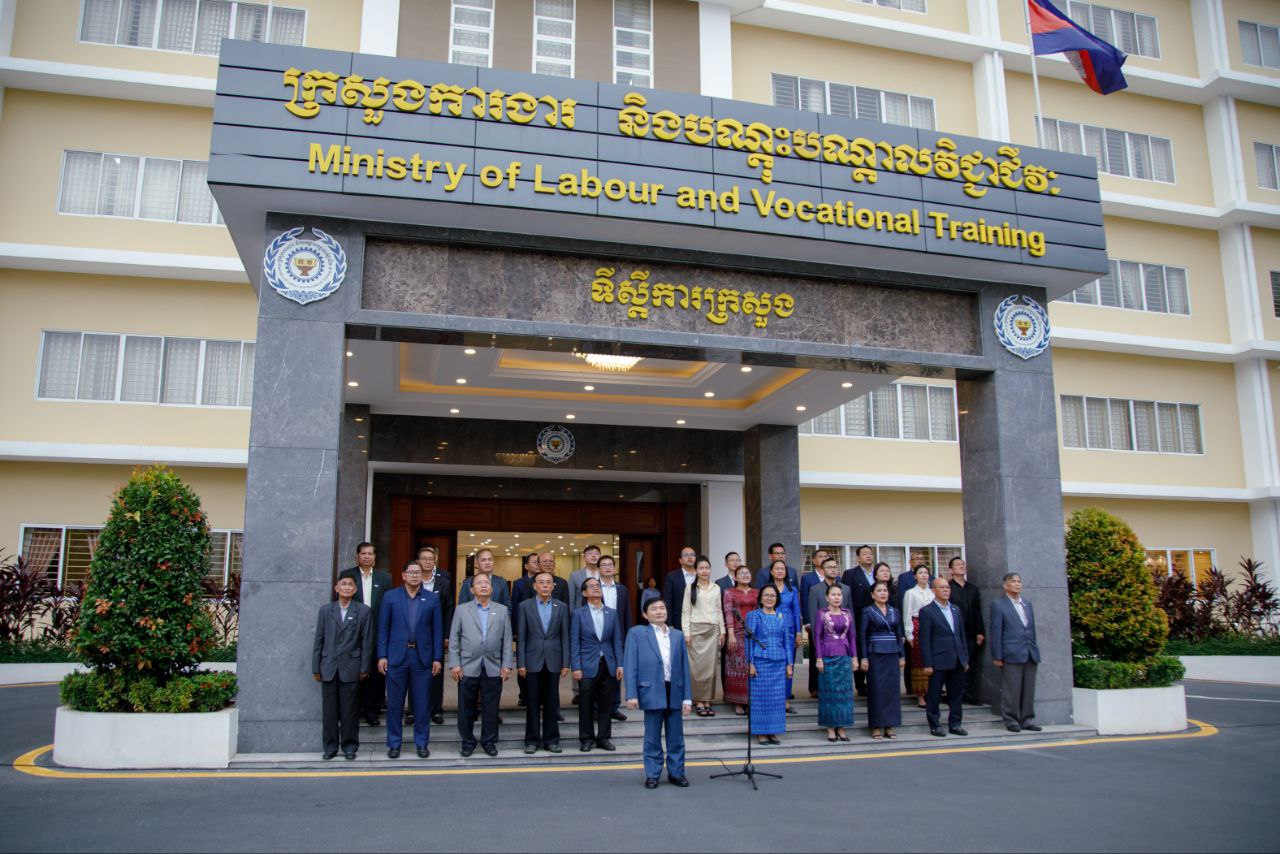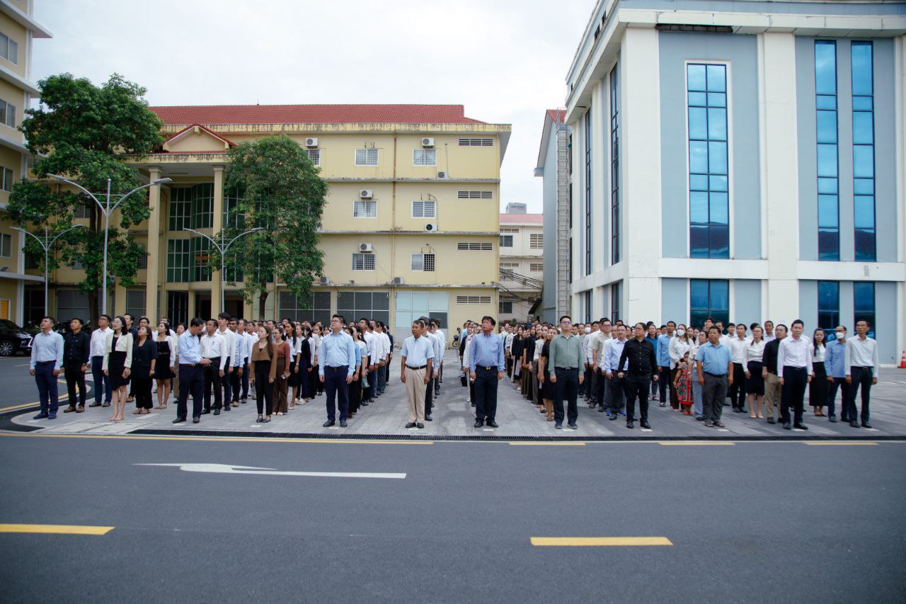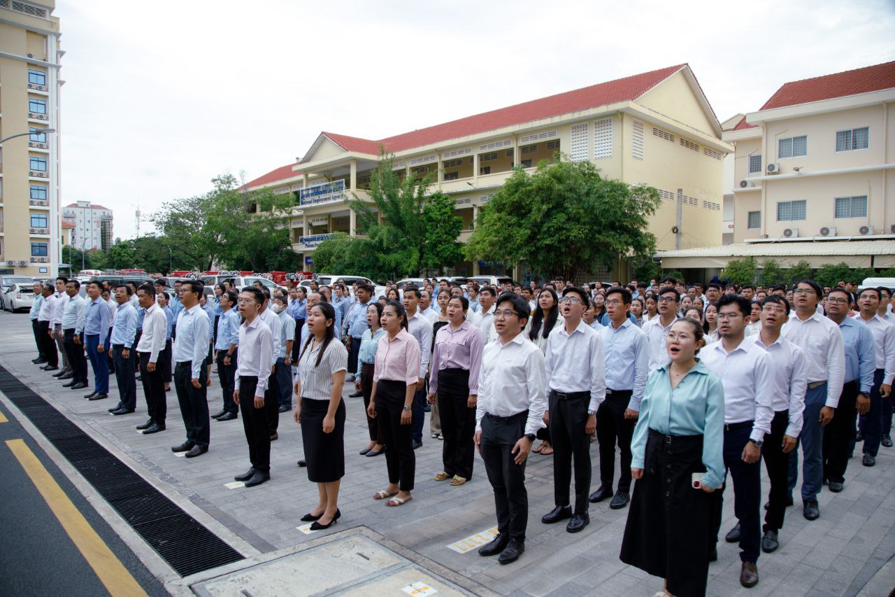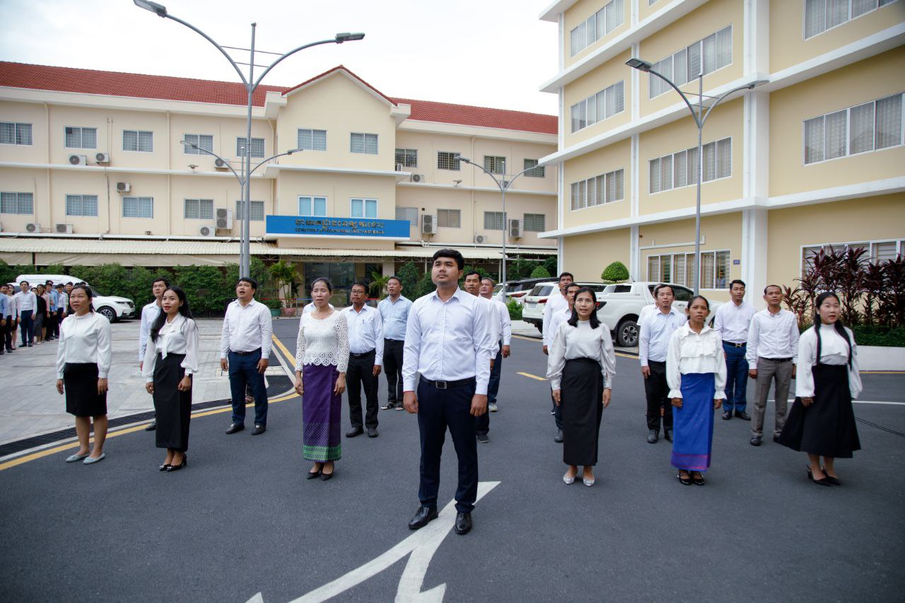 ថ្នាក់ដឹកនាំ និងមន្ត្រីរាជការនៃក្រសួងការងារ និងបណ្តុះបណ្តាលវិជ្ជាជីវៈ ចូលរួមគោរពទង់ជាតិនៃព្រះរាជាណាចក្រកម្ពុជា