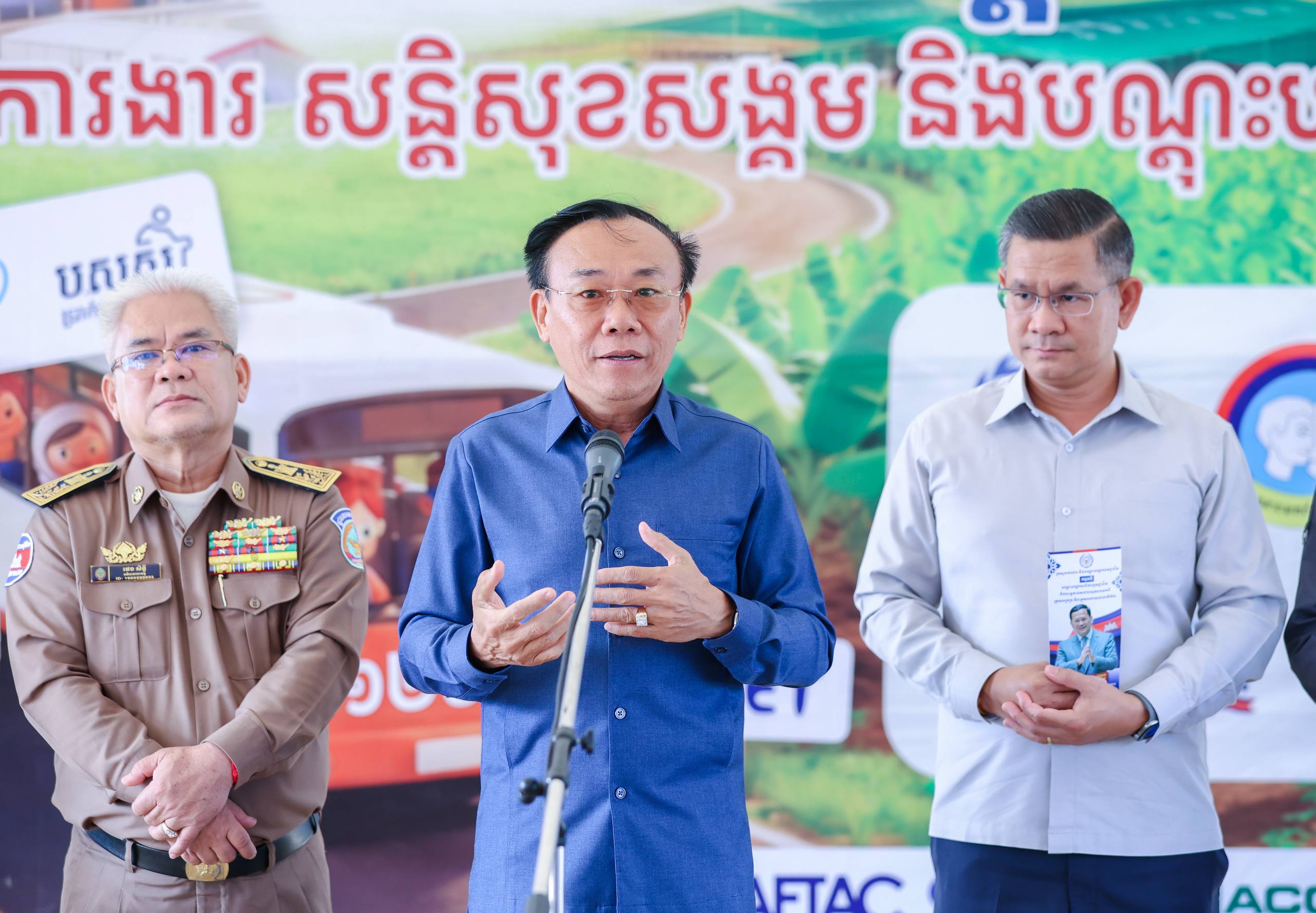 ក្នុងឱកាសនោះ ឯកឧត្តម ឡៅ ហ៊ីម រដ្ឋលេខាធិការ និងជាតំណាងដ៏ខ្ពង់ខ្ពស់របស់ឯកឧត្តម ហេង សួរ រដ្ឋមន្ត្រីក្រសួងការងារ និងបណ្ដុះបណ្ដាលវិជ្ជាជីវៈ បានគូសបញ្ជាក់ពីការយកចិត្តទុកដាក់របស់រាជរដ្ឋាភិបាល តាមរយៈការនាំយកនូវឱកាសការងារចំនួន ២ ៧៥០ កន្លែង ដែលផ្តល់ដោយតំណាងរោងចក្រ សមាគម និងទីភ្នាក់ងារបញ្ជូនពលករចំនួន ០៧ ក្នុងចំណោមឱកាសការងារសរុបជាង ៨ ម៉ឺនកន្លែងនៅទូទាំងប្រទេស។ ឯកឧត្តមបញ្ជាក់ថា ការងារក្នុងស្រុកគឺជាជម្រើសដ៏ល្អ ព្រមជាមួយនូវមានលក្ខខណ្ឌការងារល្អ និងប្រាក់ឈ្នួលសមរម្យ។ អ្វីដែលកាន់តែពិសេសនោះ គឺការទទួលបានការគាំពារពីបេឡាជាតិរបបសន្តិសុខសង្គម (ប.ស.ស.) ដែលផ្តល់នូវភាពកក់ក្តៅដល់កម្មករនិយោជិត និងការជួយសម្រាលបន្ទុកជីវភាពតាមរយៈបណ្ណក្រីក្រសម្រាប់បងប្អូនដែលមានតម្រូវការចាំបាច់។
